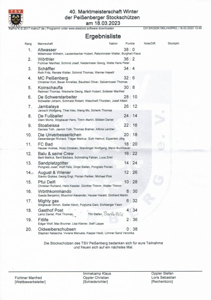 Das Ergebnis der Marktmeisterschaft Winter vom 18.03.2023: