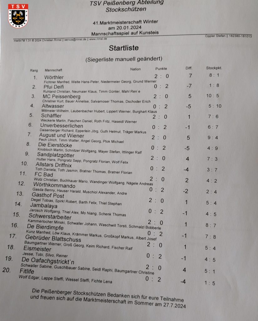 21.01.2024: Ergebnis der Marktmeisterschaft